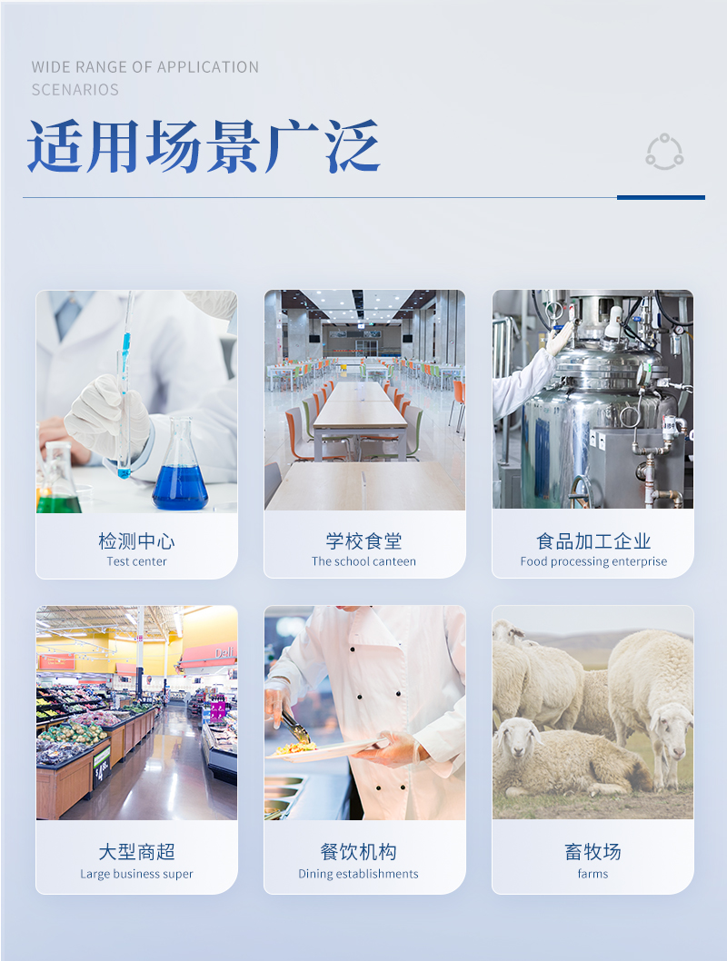 该病害肉检测仪为集成化食品安全快速检测分析设备,目前已于市场监管局、食品肉产品深加工企业、学校食堂、卫生部门、畜牧部门、屠宰场、检验检疫部门等单位广泛使用。