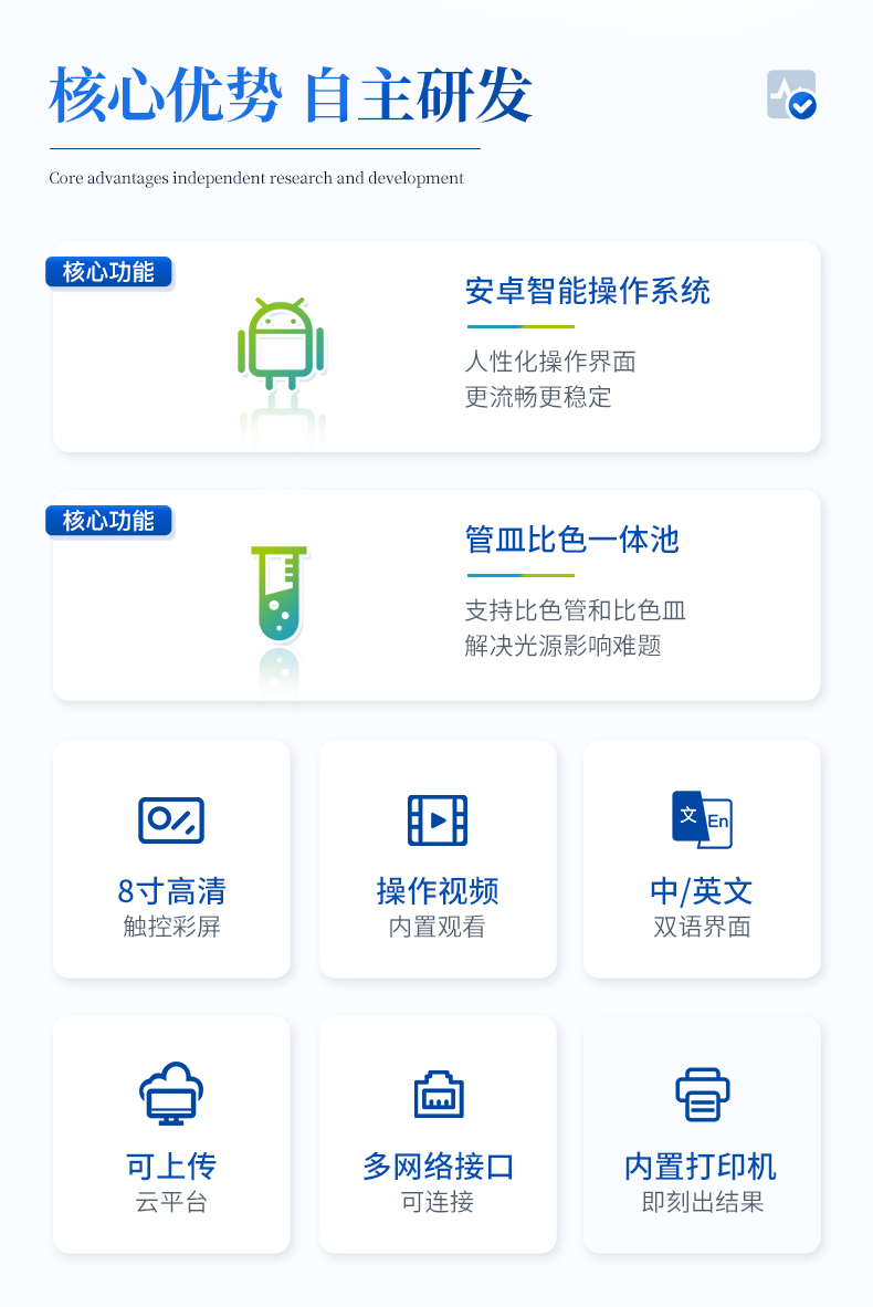 3、采用精密比色池设计,使用光源一致,可以解决由于光源误差带来的检测结果误差问题,检测结果更加精准。
