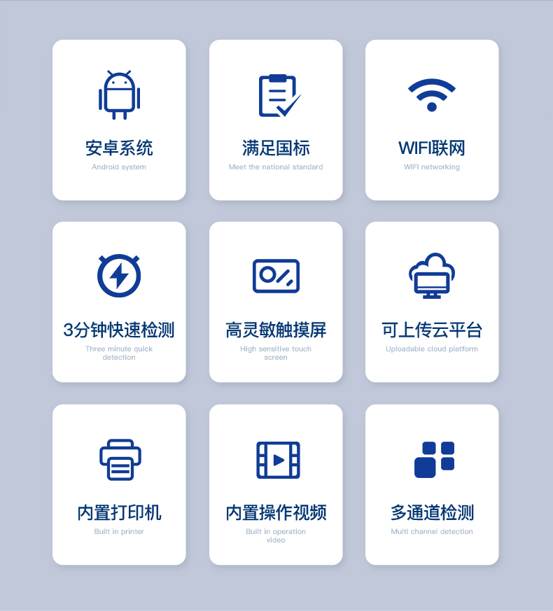 | *波长配置:412nm; | *抑制率显示范围:0%~100%; | *抑制率测量范围:0%~100%; | *透射比准确度:±1.5%; | *透射比重复性:≤0.5%; | *漂移:≤0.005Abs/3min; | *抑制率示值误差:≤10% | *抑制率重复性:≤5% |