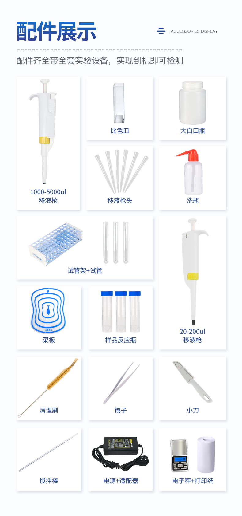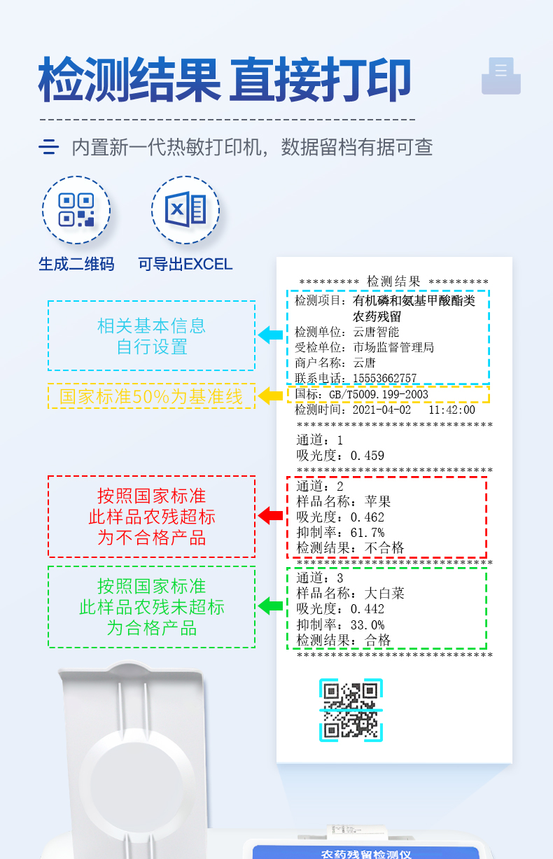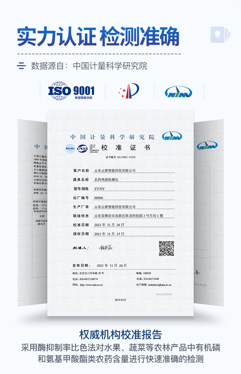 检测标准:依据国家标准方法(GB/T5009.199-2003)以及世界卫生组织WHO、世界粮农组织FAO残留农药检测标准、世界环境保护局EPA参照摄入量等要求来设计。采用酶抑制率比色法对水果、蔬菜等农林产品中有机磷和氨基甲酸酯类农药含量进行快速准确的检测。