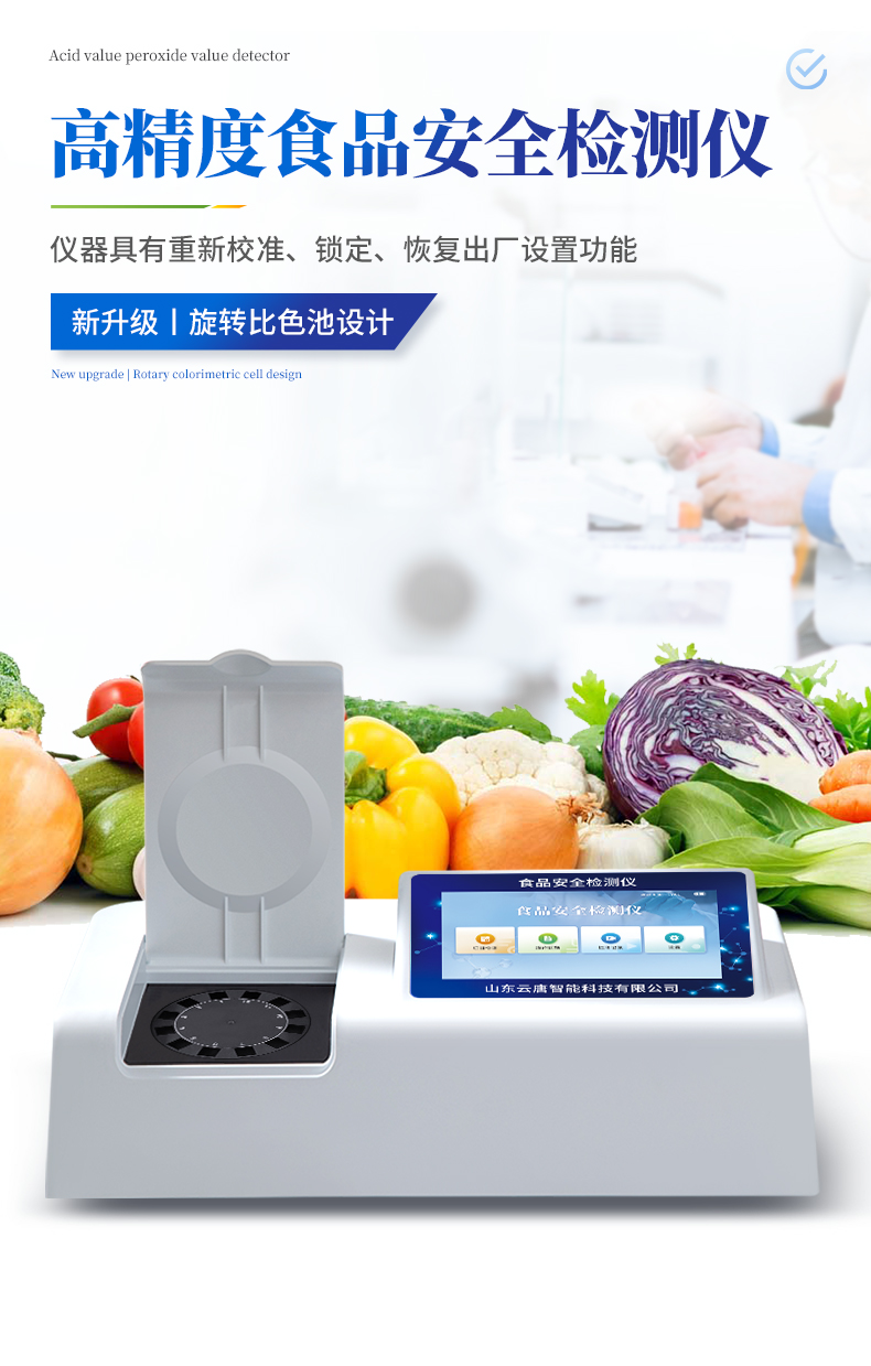 高精度食品安全检测仪可快速对食品安全项目进行定量检测。检测项目可根据客户需求从项目表中定制1项,仪器预留其他项目程序和端口,方便后期升级,可根据日后实际需求增加其他相关检测项目。