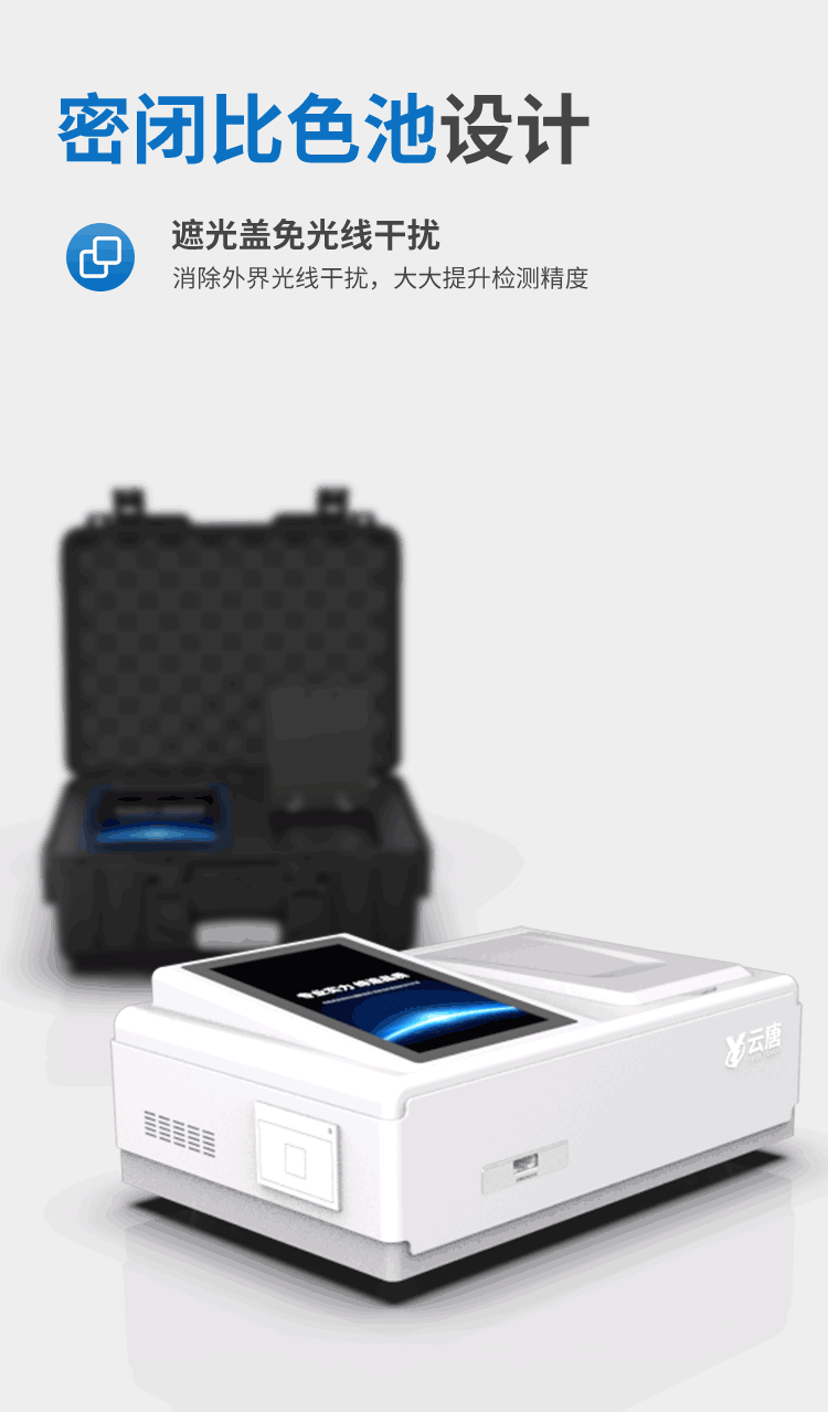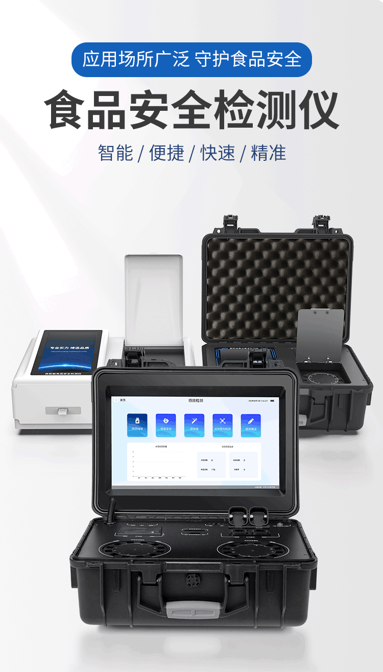 山东云唐智能科技有限公司生产的多功能食品安全检测仪为集成化食品安全快速检测分析设备,采用台式一体化设计,可快速检测60多种食品安全项目,包含非食用化学物质、滥用食品添加剂、农药残留、重金属、病害肉、营养强化剂等项目的定量检测